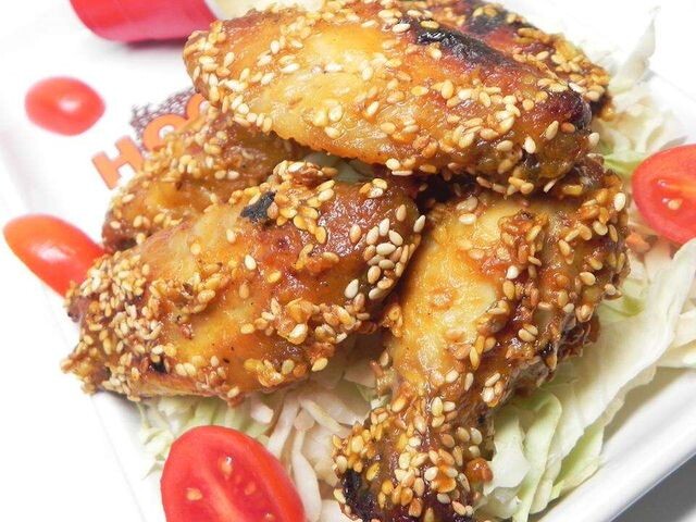 3. Выньте крылышки из маринада. Обжаривайте по 5-10 минут с каждой стороны или до готовности. Смазывайте маринадом каждые несколько минут. Выньте из духовки и обильно посыпьте семенами кунжута.
