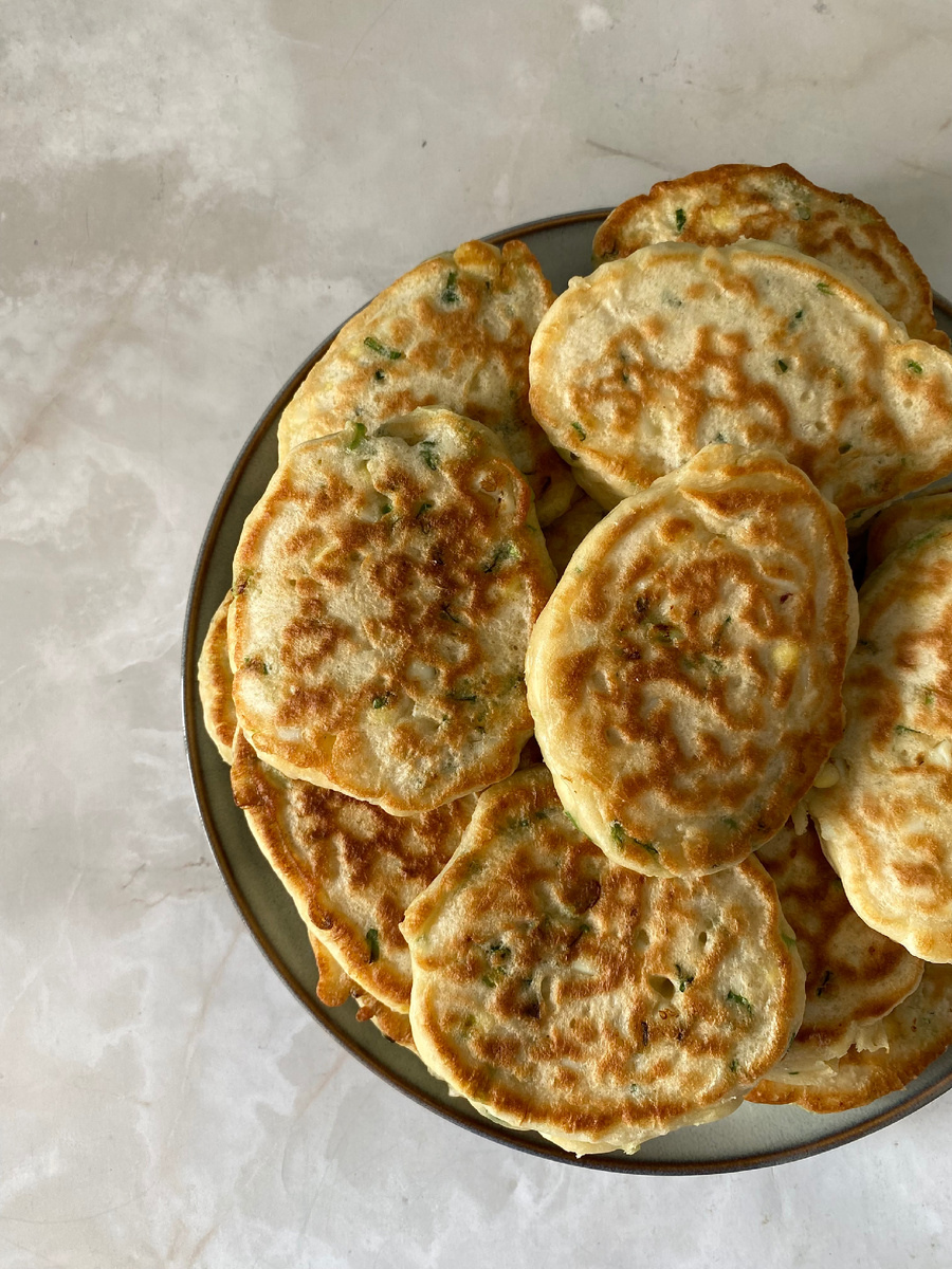 Ингредиенты: Кефир 2,5% – 500 гр (комнатной температуры) Соль – 8 гр Сахар – 7 гр Яйцо – 2 шт Мука – 350 гр Сода – 1 ч.л без горки Для начинки: Яйца отварные – 6 шт Зелёный лук – 50 гр Приготовление: 1. В кефир добавьте соль, сахар и яйца, перемешайте. 2. Всыпьте муку, замесите густое тесто. Добавьте соду и снова перемешайте. 3. Отправьте в тесто измельчённые отварные яйца и зелёный лук. Больше тесто не перемешивать! 4. Выкладывайте по 1 ст.л теста на разогретую сковороду с небольшим количеством растительного масла и жарьте до золотистой корочки под крышкой на среднем огне.