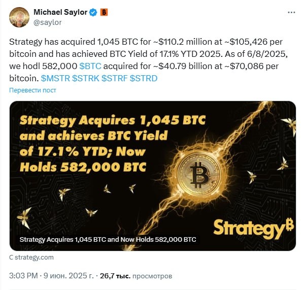πΈΒ«StrategyΒ» ΠΠ°ΠΉΠΊΠ»Π° Π‘Π΅ΠΉΠ»ΠΎΡΠ° ΠΊΡΠΏΠΈΠ»Π° 1 045 Π±ΠΈΡΠΊΠΎΠΈΠ½ΠΎΠ² Π½Π° $110 ΠΌΠΈΠ»Π»ΠΈΠΎΠ½ΠΎΠ²