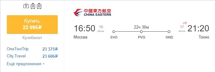 ✈️Москва - Токио (Япония), пересадка в Шанхае, с багажом, за 23000 рублей