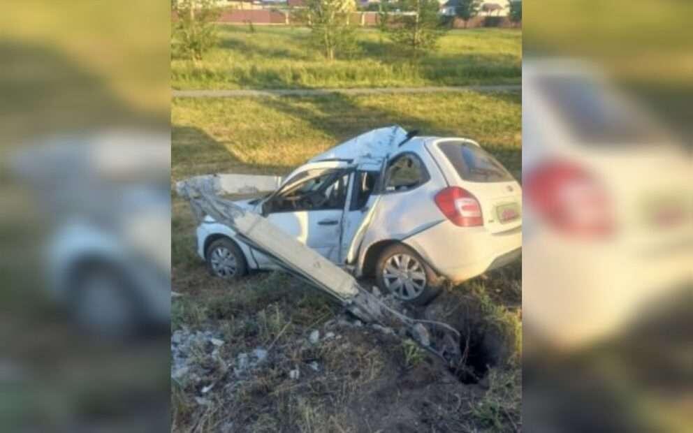 Компания молодых людей на Lada Kalina снесла бетонный столб под Воронежем