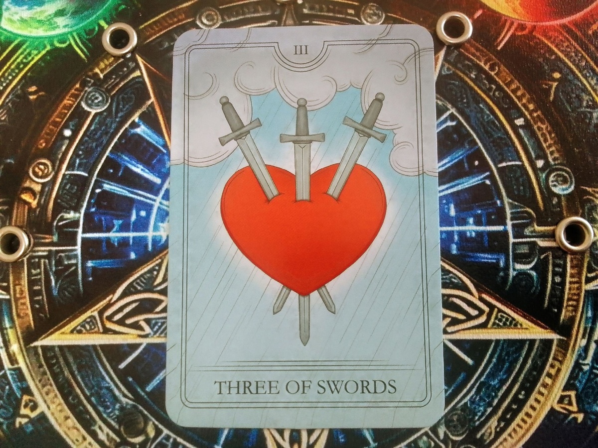 ✨Тройка Мечей — одна из наиболее печальных карт Таро, символизирующая боль, утрату, глубокие переживания и эмоциональную травму.