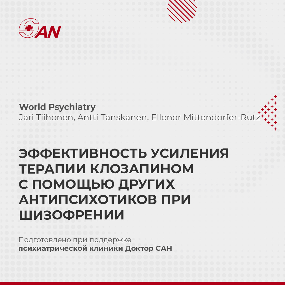 В журнале World Psychiatry опубликовано исследование, проведённое на основе данных из Финляндии и Швеции, в котором проанализирована эффективность добавления различных антипсихотиков к терапии клозапином у пациентов с шизофренией. Результаты показали, что добавление средних доз арипипразола (9–16,5 мг/сут) к высоким дозам клозапина (≥330 мг/сут) снижает риск госпитализации по причине психоза на 32% по сравнению с монотерапией клозапином. Увеличение дозы арипипразола выше среднего уровня не приводило к дополнительным преимуществам, а наоборот, повышало риск рецидива. Аналогично, добавление других антипсихотиков, таких как рисперидон, оланзапин или кветиапин, не показало значимого снижения риска рецидива и в некоторых случаях даже увеличивало его. Подробнее о лечении шизофрении: https://doctorsan.ru/lechenie-shizofrenii
