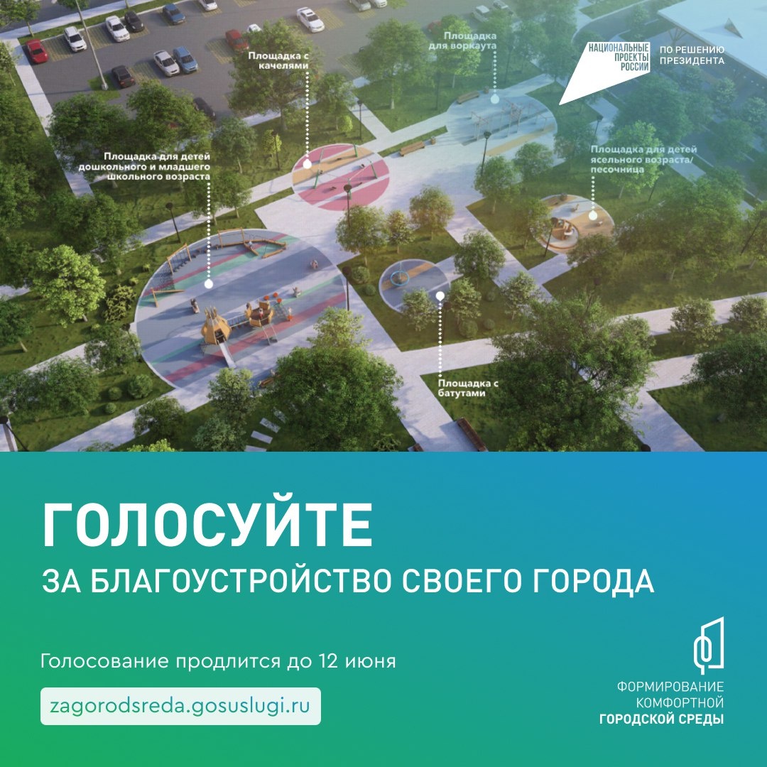 «Формирование комфортной городской среды»: осталось 3 дня 🗣 Голосование за объекты благоустройства продлится до 12 июня. Переходите по ссылке https://clck.ru/3LZQtz и выбирайте территорию, которая должна преобразиться первой. Проект реализуется по решению Президента. Хотите новый парк, сквер, спортивную площадку? Успейте проголосовать ✅
