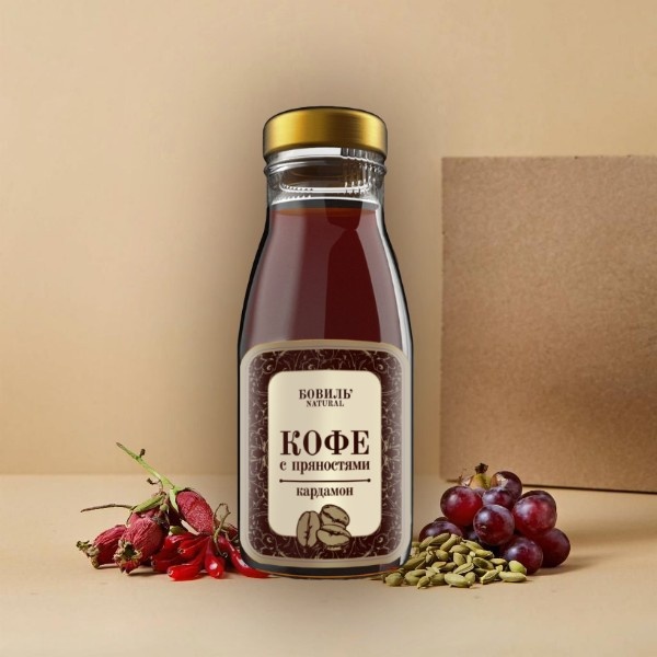 Если вы ищете не просто вкусный, но и полезный напиток, то обратите внимание на холодный кофе Бовиль' Natural. Бовиль' Natural — это натуральный продукт, приготовленный из высококачественного кофе сорта Арабика (100%), а также таких полезных ингредиентов, как шиповник, красный виноград и ароматные пряности - кардамон. Такой состав обеспечивает насыщенный вкус и полезные свойства продукта. За счет своего уникального состава холодный кофе подарит вам ощущение бодрости без перегрузки нервной системы, при этом поддерживая здоровье организма: Кофе Арабика способствует повышению концентрации внимания, улучшает настроение и помогает бороться со стрессом благодаря содержанию антиоксидантов. Шиповник, богатый витамином C укрепляет иммунитет и способствует общему оздоровлению организма. Красный виноград является источник полифенолов, улучшающих работу сердечно-сосудистой системы и защищающих клетки от повреждений. Кардамон стимулирует пищеварительную систему, улучшает обмен веществ и обладает пр