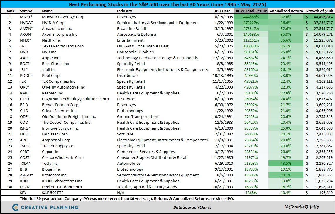 Топ 30 акций из индекса S&P 500 за последние 30 лет