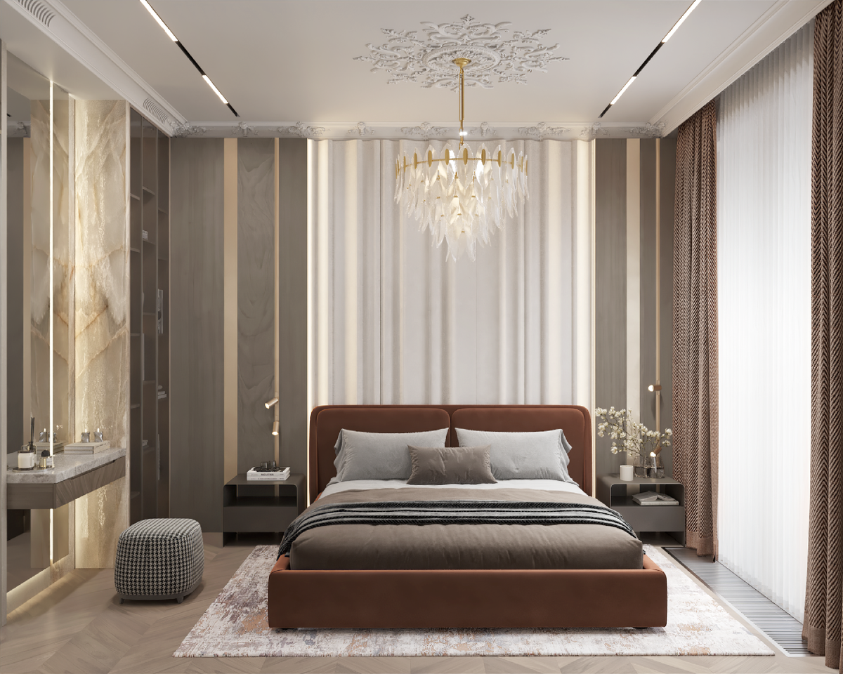 Дизайн интерьера спальни мастер, жк Foriver, квартира 153 м2