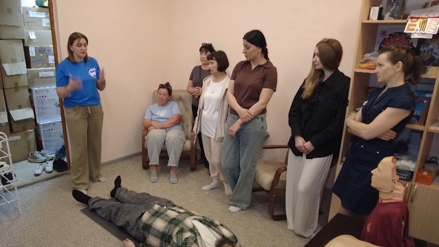 Помощь добровольцев нужна в зоне спецоперации. Среди волонтеров врачи, бухгалтеры, педагоги и студенты. Прежде чем попасть в Новороссию, они проходят подготовку, в том числе отрабатывают ситуации, когда необходимо правильно и быстро оказать первую помощь себе или раненому бойцу. Так проходят занятия по оказанию первой помощи пациентам. В роли пострадавших — добровольцы, которые буквально через несколько дней отправятся в зону спецоперации. Наталья Воронова — бухгалтер в нефтесервисной компании. Ее жизнь — это бесконечные сводки и отчеты. В какой-то момент она решила все изменить и отправиться в Донбасс, просто поставив перед фактом взрослого сына и внуков. «У меня растут внуки, работает сын. Поэтому я хочу все это прекратить, и, естественно, все это вытекает в помощь. Хочется помочь, прижать к груди детей, выложиться и быть полезной», — делится Наталья Воронова, доброволец Гумкорпуса. Новичков перед поездкой наставляют инструкторы — профессиональные медики. Учат всему, что пригодится в