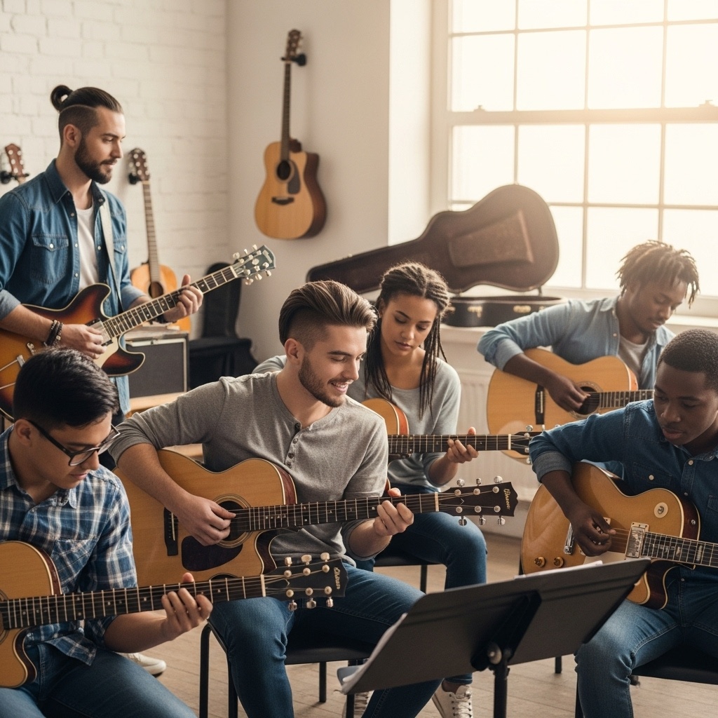 Приложения с аккордами и табами: (например, Ultimate Guitar) позволяют найти аккорды и табулатуры для тысяч песен. - Онлайн-курсы: На платформах вроде Coursera, Udemy, Skillshare можно найти структурированные курсы, которые ведут опытные преподаватели.