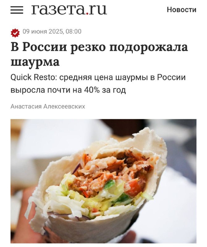 Грустные новости для любителей шавы: цены на шаверму в России улетели в космос — за год плюс 105 рублей, это почти +40%! Об этом пишет Quick Resto.