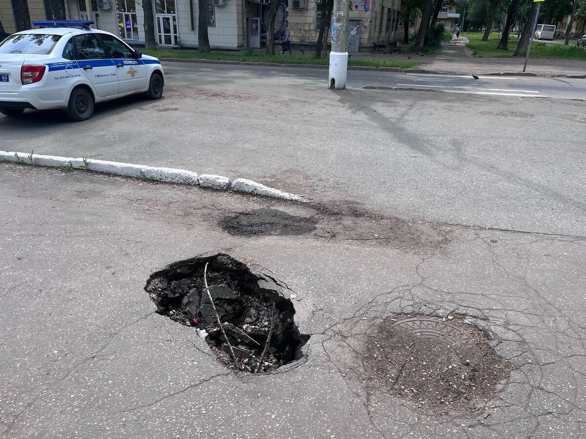 "Яма образовалась рядом с пешеходным переходом. Проблема заключается в том, что ее никак не оградили, можно ноги сломать, если не заметить", - рассказывают жители пятиэтажки, расположенной через дорогу.