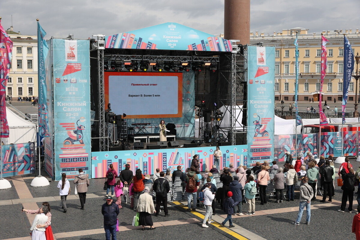 XX Санкт-Петербургский международный книжный салон, прошедший с 22 по 25 мая, стал одним из самых успешных за всю историю мероприятия. Об этом сообщил губернатор Александр Беглов на рабочем совещании с членами городского правительства. По словам Беглова, мероприятия на Дворцовой площади за четыре дня посетили почти полмиллиона человек, а общий охват в социальных сетях превысил 11 миллионов. «Такого успеха наш Книжный салон ещё не знал. Программа была обширной – проведено 280 мероприятий, и мы получили положительные отзывы», – отметил губернатор. В этом году салон был посвящена 80-й годовщине Великой Победы и Году защитника Отечества. Участники могли ознакомиться с произведениями писателей-фронтовиков, а также с публикациями современных авторов. Новинкой стало открытие видеостудии в Доме книги, из которой вели трансляции дискуссий и встреч. На салоне впервые вручили Национальную литературную премию имени Даниила Гранина, награждающую авторов, внесших значительный вклад в литературу. В к
