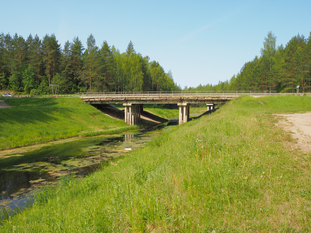 Это оказалась наземная часть дюкера. В этом месте пересекались Молохта с каналом. И чтобы их развести, был построен дюкер: две трубы длиной по 250 метров и диаметром по 2 метра. По ним волжская вода бежит над рекой. Фактически мы шли по этому дюкеру.