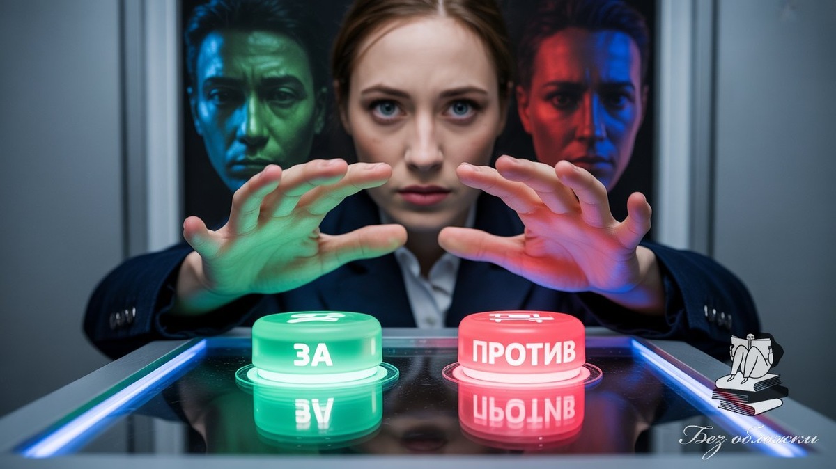 Андреас зашёл в кабинку первым. Перед ним возник голографический интерфейс — красивый, завораживающий. Две кнопки: "ЗА" и "ПРОТИВ". Между ними — видео будущего: люди, соединённые световыми нитями, улыбающиеся одинаковыми улыбками, движущиеся в идеальной синхронности.