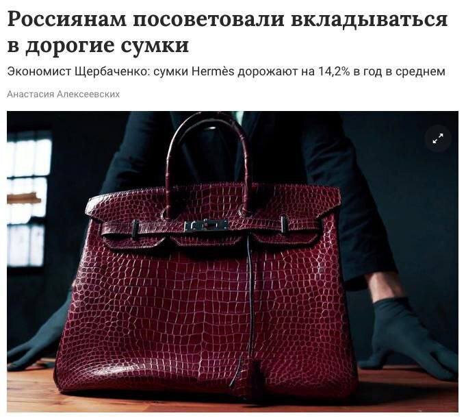 Россиянам посоветовали вкладываться в дорогие элитные сумки — модные аксессуары растут в цене быстрее золота и акций. Сумки в хорошем состоянии на вторичном рынке могут принести до 80% от первоначальной стоимости, а в идеальном — на 20% больше от первоначальной стоимости.