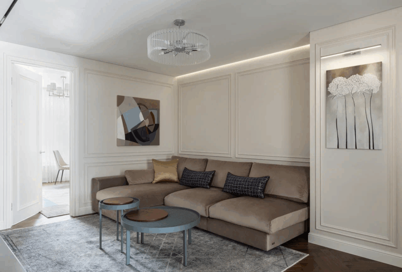 Идея этого интерьера основана на гармоничном сочетании нейтральной