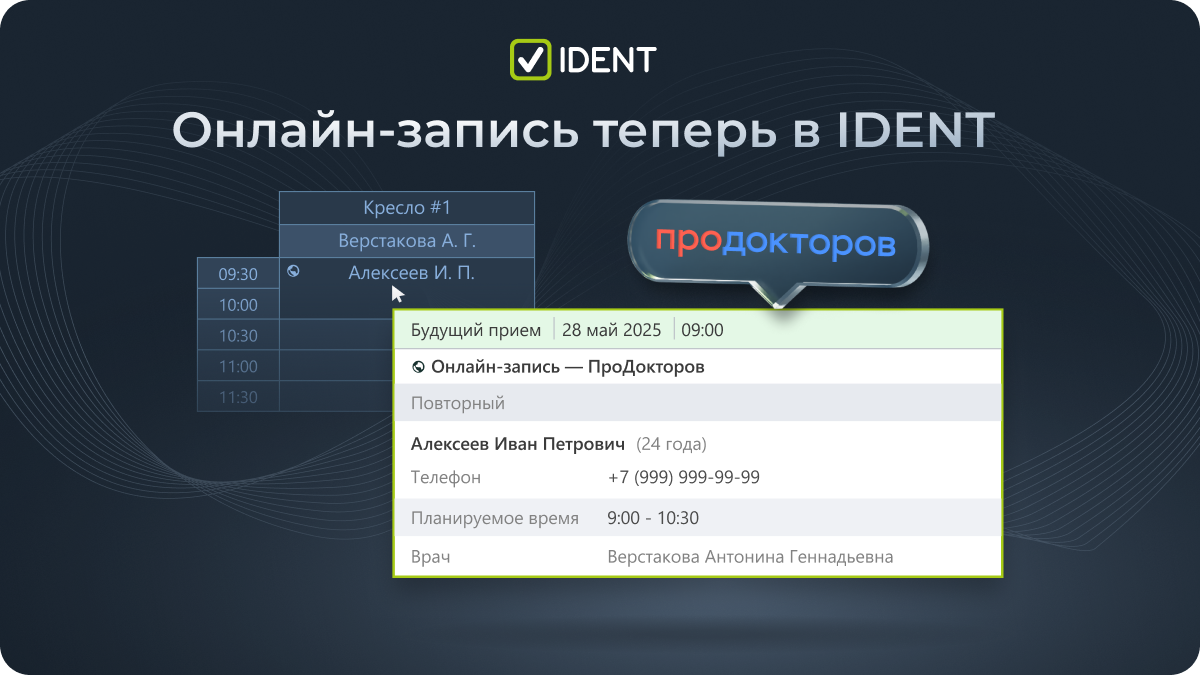 С обновлением до версии 296 программа IDENT открывает новые возможности для медицинских клиник! Теперь доступна онлайн-запись через платформу "ПроДокторов", которая интегрирована в расписание и позволяет оптимизировать работу сотрудников, повысить удобство для пациентов и улучшить аналитику. В этой статье расскажем, как новая возможность изменит работу вашей клиники и почему она станет важным инструментом для повышения эффективности. Онлайн-запись в IDENT — это не просто кнопка на сайте, а полноценный канал коммуникации с пациентами, который интегрирован во все процессы программы. Система позволяет пациентам самостоятельно выбирать врача и удобное время визита, а клинике — отслеживать эффективность этого канала и его влияние на ключевые показатели. Онлайн-запись в IDENT — это не просто техническое новшество, а стратегический инструмент, который помогает клинике адаптироваться к современным реалиям. Сегодня всё больше пациентов предпочитают мессенджеры и онлайн-сервисы традиционным зво