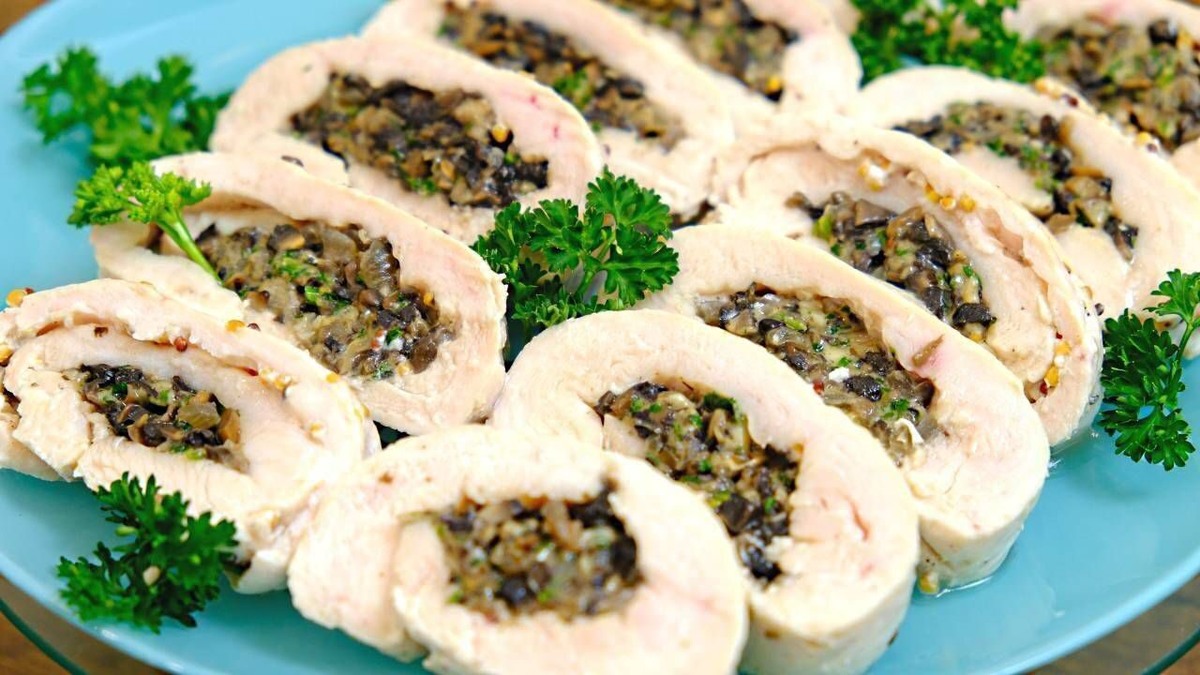 РУЛЕТ ИЗ КУРИНОГО ФИЛЕ/С грибной начинкой.