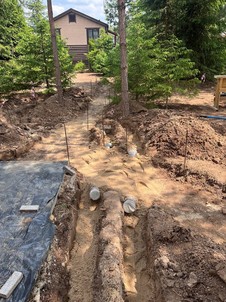 Сегодня занимаемся копкой канав для водоразеток и кабеля для освещения, произвели укладку геотекстиля и начали отсыпку песка. Раза четыре был дождь, зато дышать стало легче. #благоустройствоучаскаподключ