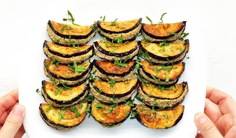 Ингредиенты: 🔹Баклажаны - 550 г 🔹Вода - 800 мл 🔹Соль - 2 ч. л. (с горкой) ✅Для начинки: 🔹Грецкие орехи (обжаренные) - 160 г 🔹Майонез - 70 г 🔹Чеснок - 3 зубчика 🔹Лук (у меня красный ялтинский) - 1/4 шт. 🔹Лимонный сок - 1,5 ч. л. 🔹 Петрушка (кинза) - 30 г 🔹 Черный молотый перец - 1/3 ч. л. 🔹 Хмели-сунели - 0,5 ч. л. 🔹 Молотый кориандр - 0,5 ч. л. 🔹Петрушка (кинза) - для украшения Приготовление пошагово: 1️⃣Баклажаны нарезаем кольцами, солим, заливаем водой, сверху ставим груз и оставляем на 30 минут. 2️⃣Для начинки в чаше блендера (с насадкой ножи) соединяем обжаренные грецкие орехи, майонез, лук, чеснок, лимонный сок, петрушку и специи. 3️⃣Пробиваем до однородной пастообразной консистенции. 4️⃣С баклажанов сливаем воду и прослушивать их при помощи бумажных полотенец. 5️⃣Яйца солим их и взбалтываем вилкой. 6️⃣Кружочки баклажанов сначала опускаем в яйца, а затем выкладываем на разогретую сковороду. 7️⃣Обжариваем на среднем огне с небольшим количеством растительного масла с