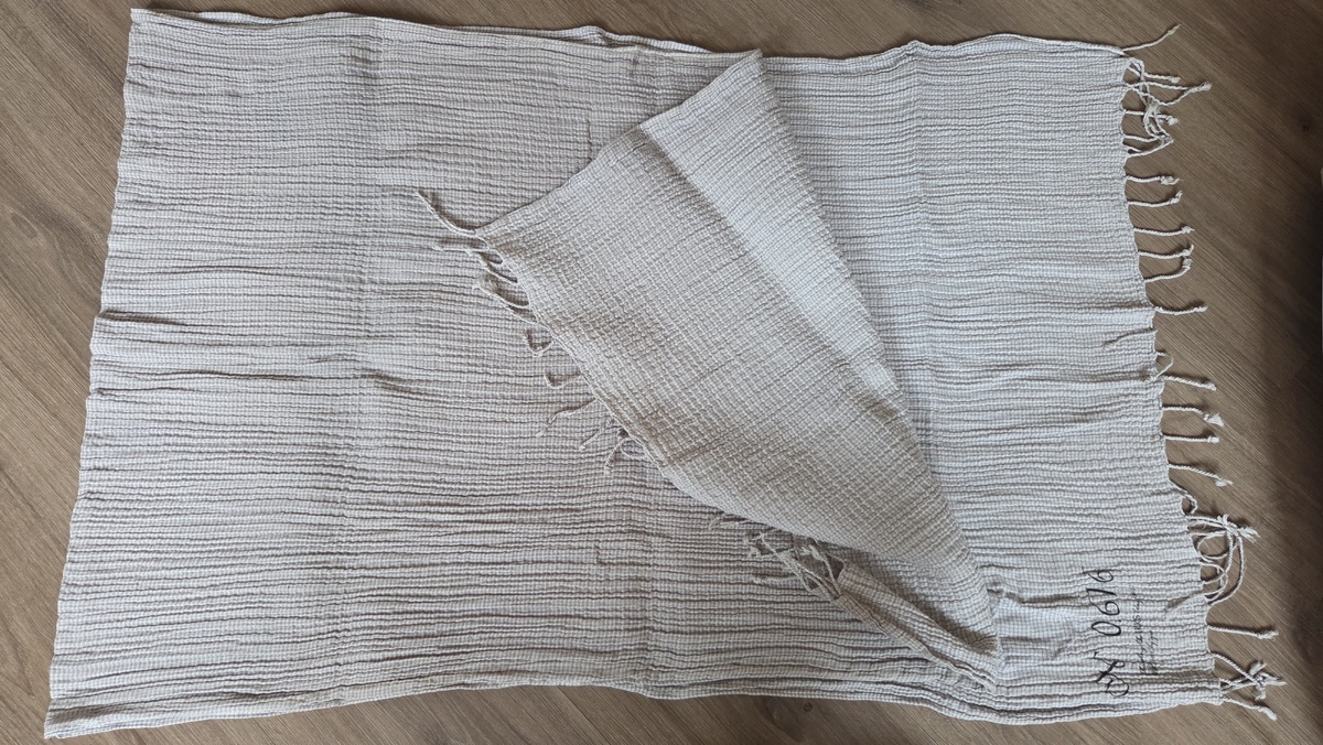 Дальше будут покупки для других. К маме отправилось целых два шёлковых платка. Первый - яблоневый цвет с кисточками и бусинками. Выглядит очень нежно. Был без бирки, но это шёлк без сомнений. Тонкий и скользящий. А второй, наоборот, более яркий и контрастный. Оттенки более "тяжёлые", для более холодного времени года. ***