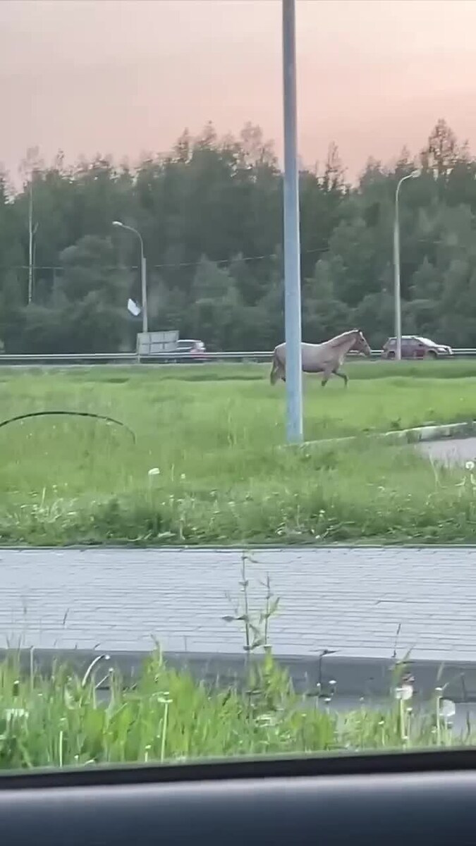 Автомобилисты переживают за коня, которого оставили на газоне у дороги на окраине Всеволожска