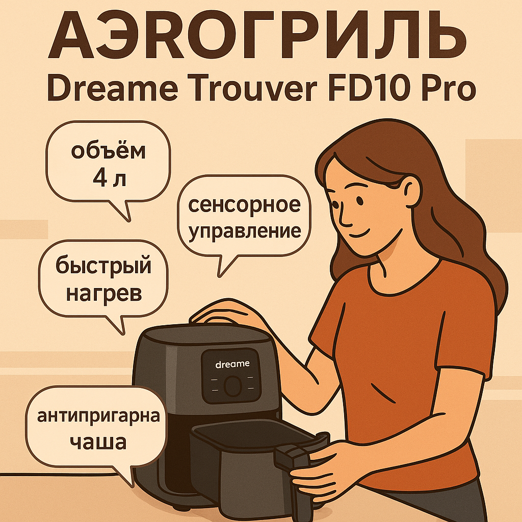 Среди современных аэрогрилей Dreame Trouver FD10 Pro уверенно конкурирует с устройствами Philips, Xiaomi, Tefal. Главное отличие — сочетание мощности, компактности и широкого функционала при минимальном количестве недостатков. Ниже приведено сравнение характеристик: