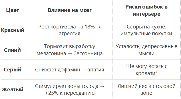 ✅ Лечение: Зелёный мох (RAL 6005) → +34% к концентрации (данные MIT). Ошибка 3: Чёрная ванная