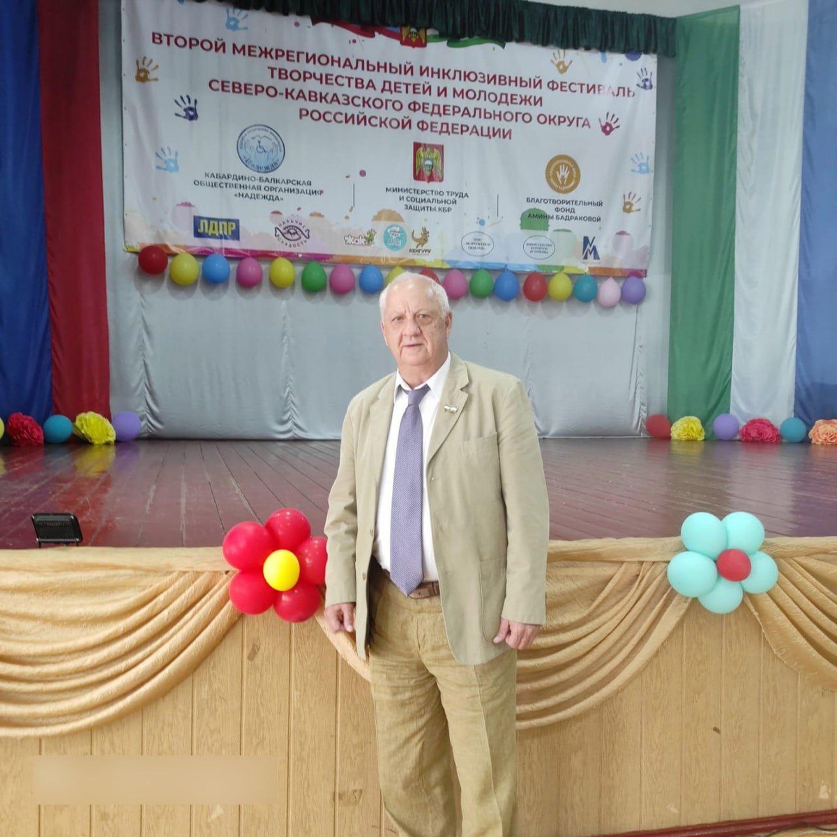 Состоялся II Межрегиональный инклюзивный фестиваль творчества детей и молодежи Северо-Кавказского федерального округа. От имени депутатов законодательного органа республики с приветственным словом к участникам мероприятия обратился руководитель фракции ЛДПР в Парламенте КБР Владимир Безгодько. Для собравшихся был организован концерт с красочными номерами, который не оставил никого равнодушным. Всем участникам вручены памятные дипломы и подарки от ЛДПР.