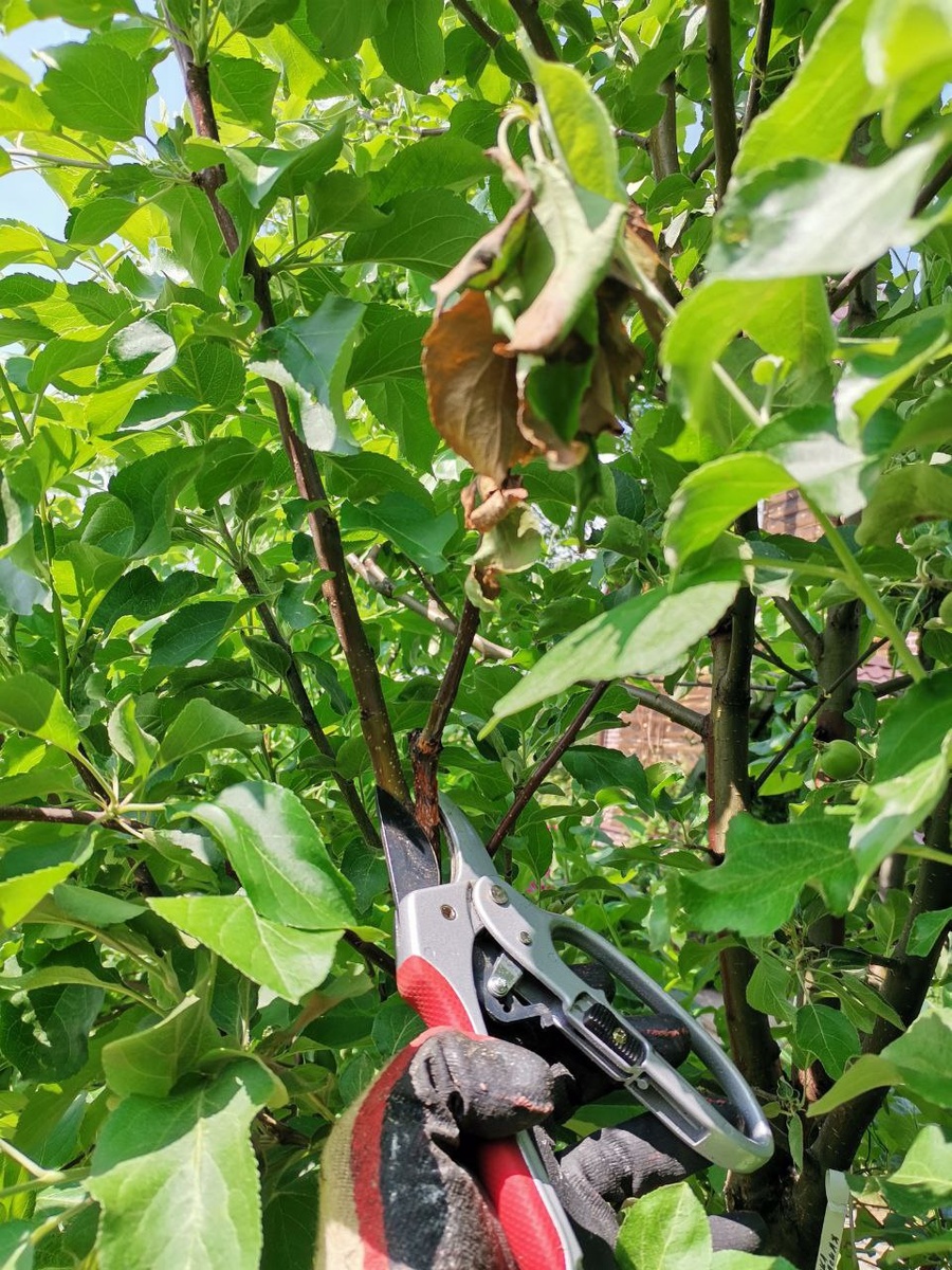 Работа дня. Санитарная обрезка, уход за прививками. В конце дня очередная обработка. В этом посте есть большое видео, которое не загрузилось в Дзен. Откройте оригинал поста в телеграме, чтобы его посмотреть