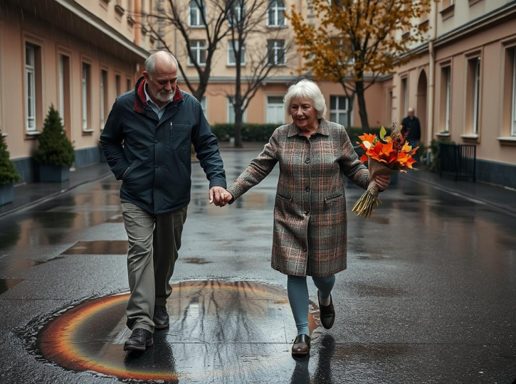 Мальчик убежал, увлеченный новой игрой, а Виктор Петрович остался сидеть на лавке, глядя на лужу. Он смотрел на эти слабые, ускользающие оттенки и вдруг почувствовал что-то странное. Какое-то тепло разлилось по его телу. Он словно впервые за долгое время заметил красоту в этом мире. В этом маленьком, ничем не примечательном мгновении.