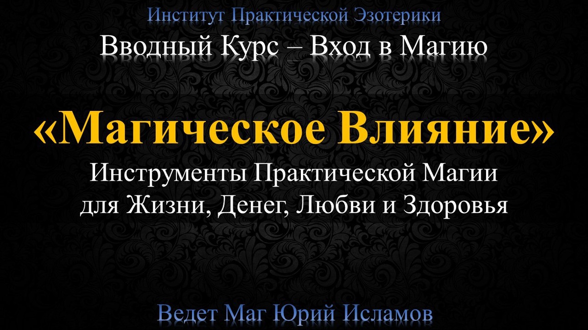 В продолжение третий вводный курс "Магическое Влияние"
