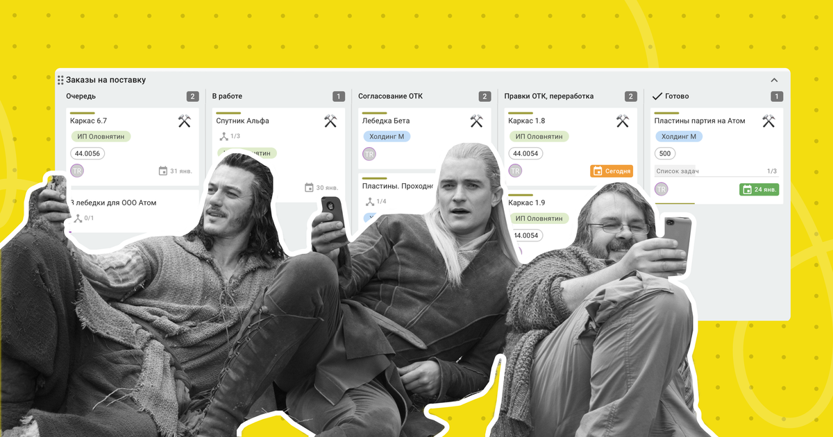 Особенно в этом помогают Канбан-доски — с их помощью легко разбить процесс на стадии. Для этого на досках можно создавать колонки — этапы выполнения задач. Самые простые этапы — это «Очередь», «В работе» и «Готово». Но вы можете создавать неограниченное количество этапов на досках с любыми наименованиями. Благодаря этапам команда в любой момент видит, на какой стадии выполнения находятся разные задачи.