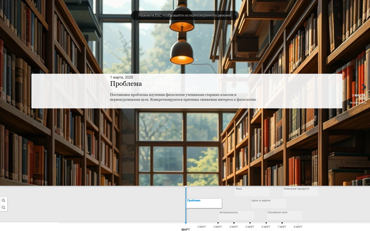 Рассмотрите представленную хронолинию проекта и выполните следующее задание: Дополните хронологию пропущенными элементами, заполнив даты подэтапов, начиная с первого пункта, исходя из общей продолжительности проекта (май-июнь 2025 г.). Как долго длился этап разработки учебных пособий? Какие методы оценки вы бы предложили добавить к проекту для определения его успешности? Предложите варианты новых мероприятий для стимулирования интереса школьников к изучению русского языка. Эти вопросы позволят вам глубже погрузиться в структуру организации учебной деятельности и рассмотреть аспекты проектирования эффективного учебного курса.