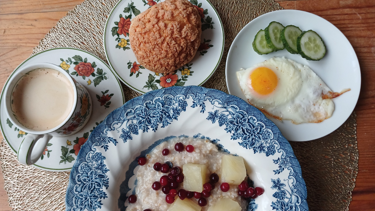 Мы уже дома, сегодня разбираю вещи, мою чемоданы, загружаю стирки. И еда переходит в наш привычный режим. Завтрак: овсяная каша с ананасом и брусникой, яичница с овощами, кофе и булочка со сливками (ностальгия по Питеру 😇) Сегодня готовлю полностью завтрак, обед и ужин. На обед сварила суп из крапивы со щавелем. Всю зелень привезла с собой из Питера, с участка друзей. остальную крапиву вымыла, нарезала и заморозила. Будем зимой из нее суп варить. Сегодня был 100% кешбек на средний бокс в "Точке", мы с сыном заехали и купили три бокса, как раз на обед. Добавила только овощи. И после обеда попила кофе с булочкой Я уже не ужинала вечером, съела пару бутербродов с чаем Мои ели суп, доедали макароны, ели булочки. Меню год назад