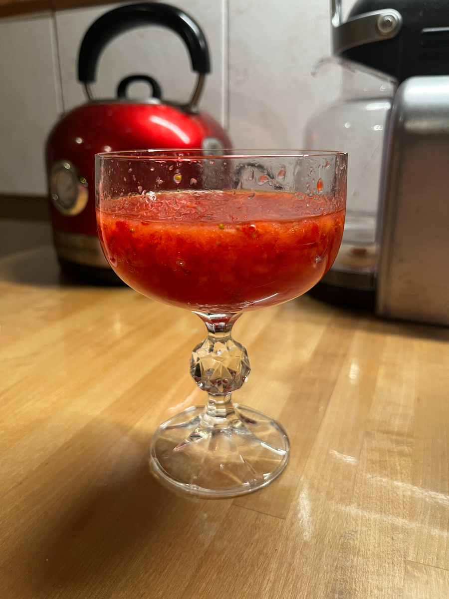1. Клубнику нарежьте очень мелко или измельчите в блендере.