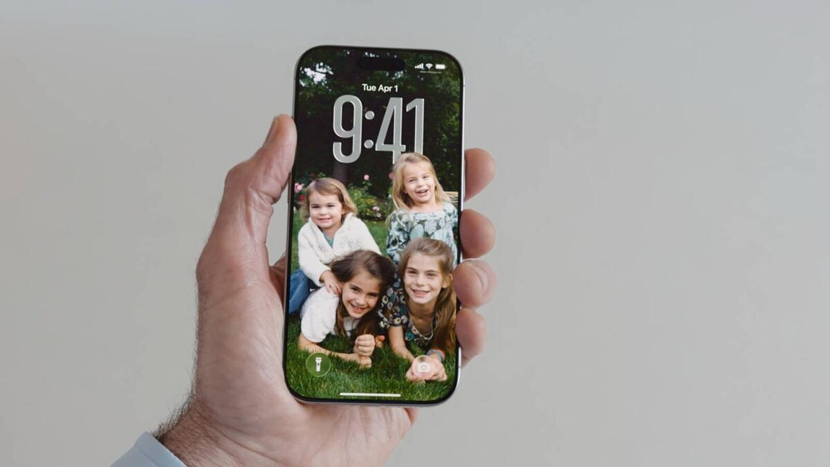 Крейг начинает с экрана блокировки. Часы, уведомления и кнопки на главном экране становятся стеклянными