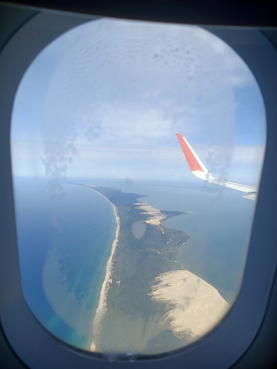 Когда увидел её с борта самолёта, то немного обалдел, хотя аналогов видел много, их и в Крыму достаточно, но здесь с высоты, Куршская коса выглядит величественно, и, даже если бы у меня не было бы планов её посетить, то увидев сверху, я бы обязательно её включил!