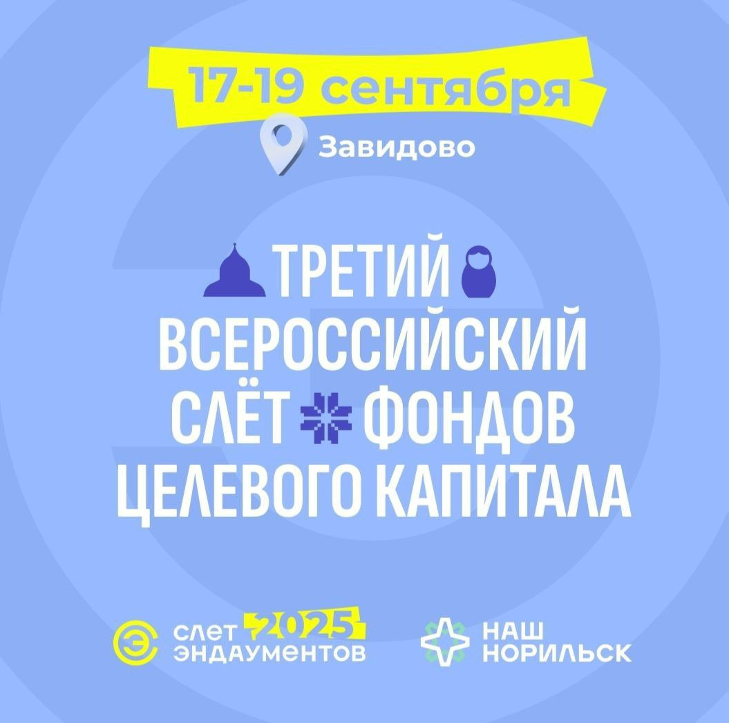 Встречу с 17 по 19 сентября 2025 года организует Фонд целевого капитала «Наш Норильск». В сентябре пройдет Третий Всероссийский слёт эндаументов. Первый слёт состоялся в Норильске в 2023 году. Тогда в нём приняли участие более 50 представителей ФЦК из разных городов России. - Идея создания такой площадки, как Слёт эндаументов, состоит в продвижении темы стратегической благотворительности. Слёт – это площадка для обмена опытом, знаниями, экспертностью среди руководителей эндаумент-фондов. Обменяться опытом, объединиться и масштабировать лучшие разработки в сфере эндаументов, таким образом преображая свои регионы, – вот наша цель, – отметила Анна Макуха, член Правления Национальной ассоциации эндаументов, директор Фонда «Наш Норильск». Каждый слёт становится ярким событием в сфере целевых капиталов. Каждый год объявляют актуальную тему. Например, в 2024 году это были коммуникации. Участников третьего слёта эндаументов также ждут интересные спикеры, много увлекательной практики и интера