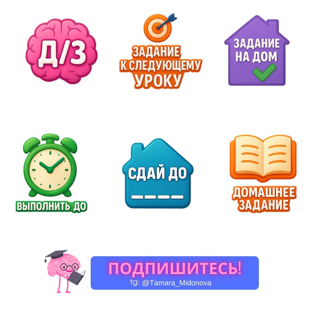 ⛳️ Наклейки-напоминания о домашнем задании и сроках его выполнения — теперь всегда под рукой! ✏️ Прозрачный фон: отлично смотрятся на любых интерактивных досках и презентациях. Успешных Вам уроков и старательных учеников! 🔗 Забирайте за ❤️ в комментариях! — 🍀 Подборка материалов для удобной навигации |Telegram | ВКонтакте #методичка_математика_на_5 #наклейки