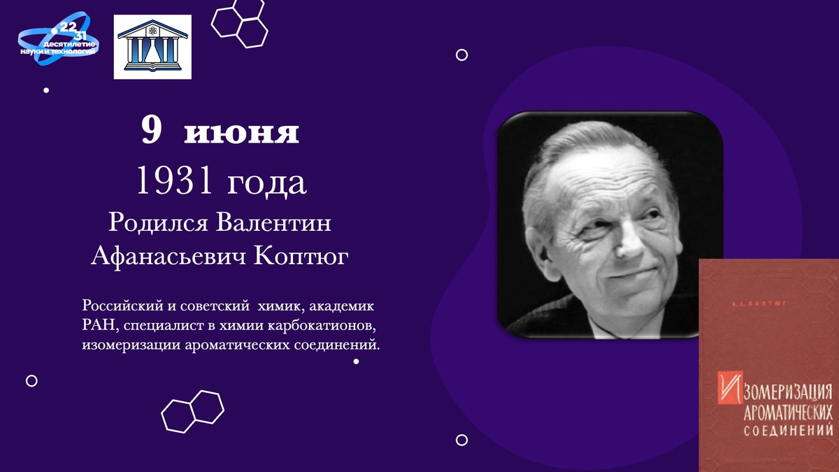 94 года назад в Юхнове Калужской области родился выдающийся химик и академический деятель, Валентин Афанасьевич Коптюг (1931-1997). Коптюг связал свою жизнь с Новосибирском - тамошним Институтом органической химии, где занимался изучением строения и свойств карбокатионов, изомеризации органических соединений, аренониевых ионов и много другого. Был академиком, вице-президентом РАН и главой Сибирского отделения РАН. Увы, он прожил для ученого очень мало: 66 лет. #деньвисториихимии Материал подготовлен ИОНХ РАН для проекта «Виртуальный музей химии: продолжение осмотра» при грантовой поддержке Минобрнауки России в рамках федерального проекта «Популяризация науки и технологий». Проект выполняется в рамках Десятилетия науки и технологий