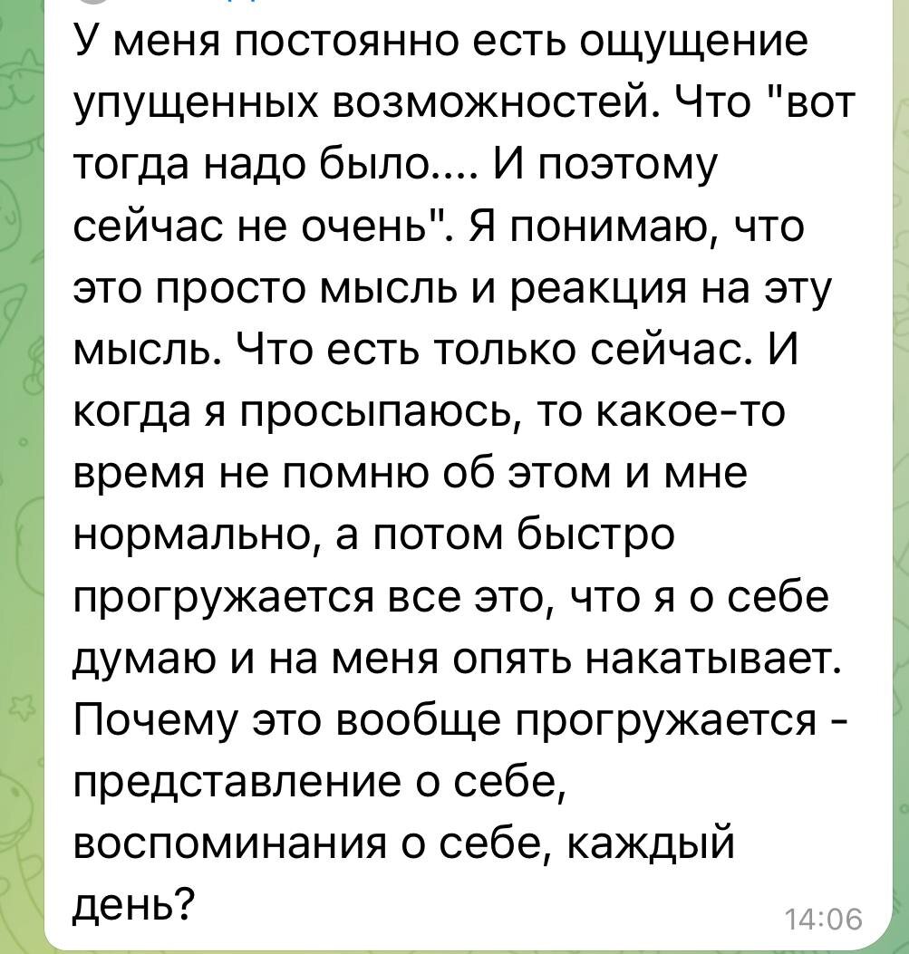 Ты не просыпаешься как «я». И не просыпаешься как «никто». Ты вообще не просыпаешься Просто вспыхивает кадр, в котором присутствует ощущение пробуждения, тело, свет, может быть тишина. Кажется, будто сначала ты просто есть, а потом прогружается память, история, имя. Но и это «просто есть» уже содержание кадра. Просто ещё не различено. Потом вспыхивает мысль. И кажется, что «вот теперь я вспомнил себя». Но нет прогрессии. Есть только последовательность различённых форм. Ты не загружаешься. Просто всплывает структура узнаваемого. Образ, к которому прикреплено: «я», «что-то упустил», «надо было тогда», «поэтому теперь…». Не ты это держишь. Не ты это вспоминаешь. Это просто вспышка, в которой снова собралось “я”. Указатель: Даже то, что кажется «чистым» и «до мыслей» —⚡️уже кадр. Свобода — не в возвращении к тишине. А в распознавании, что даже тишина — просто форма, в которой ничего не удерживается. Всё — уже. Потому что никто не вспоминал. Никто не возвращался. Никто не засыпал. Просто