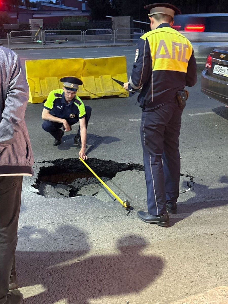 Так сейчас выглядит провал на перекрестке Карла Маркса и Красной, в который провалилась машина.