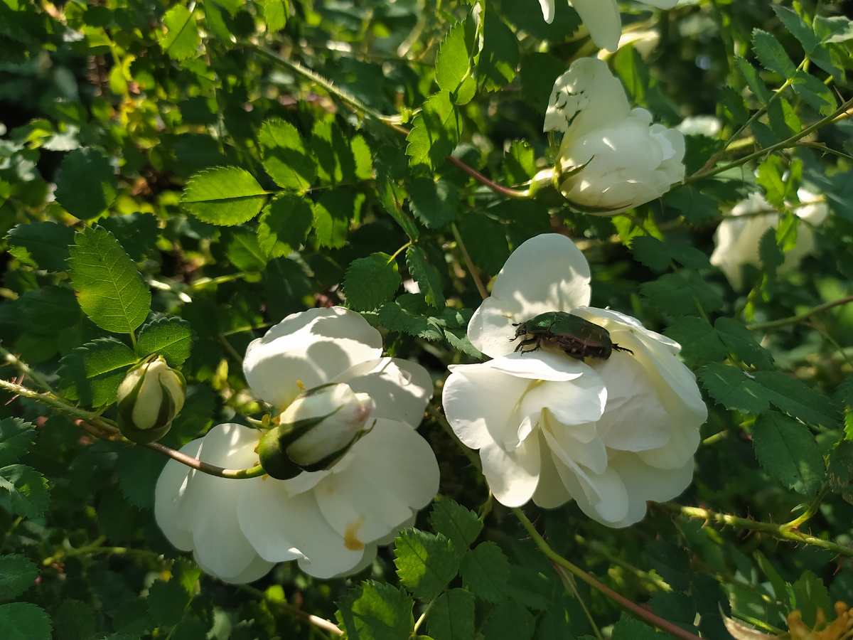 Утро оказалось волшебным. Солнце приветливо, времени достаточно, чтобы перенюхать все встречные шиповники и жасмины. Сияющий жук всполз на бутон и показал мастер-класс по утаптыванию лепестков в уютную постельку. Нахлынуло ощущение детства, когда в дне бесконечно много времени и можно успеть прожить несколько жизней – пасти жука, строить домик на кривой яблоне, разведать тропу индейцев, нарвать ягод в чужом огороде, и ещё многое – пока мама позовëт обедать... Добро пожаловать в гости. Если заглянули в «Кармашек» впервые - будьте готовы к уютному, доброму общению. Рукоделие, фотопутешествия, фотопоэзия и поиск счастья в ежедневности - это нас объединяет, дарит силы и вдохновение. Канал дневниковый, всë субъективно и от первого лица - пережитое и увиденное лично. Мимоходом заглянула в яркие джунгли, поймала своë подобие. Новая туника хороша. Потом быстренько пролетел рабочий день, в котором не оказалось места блогингу. Впрочем, погода щедро наполнила день дождëм, ливнем, грозой, не