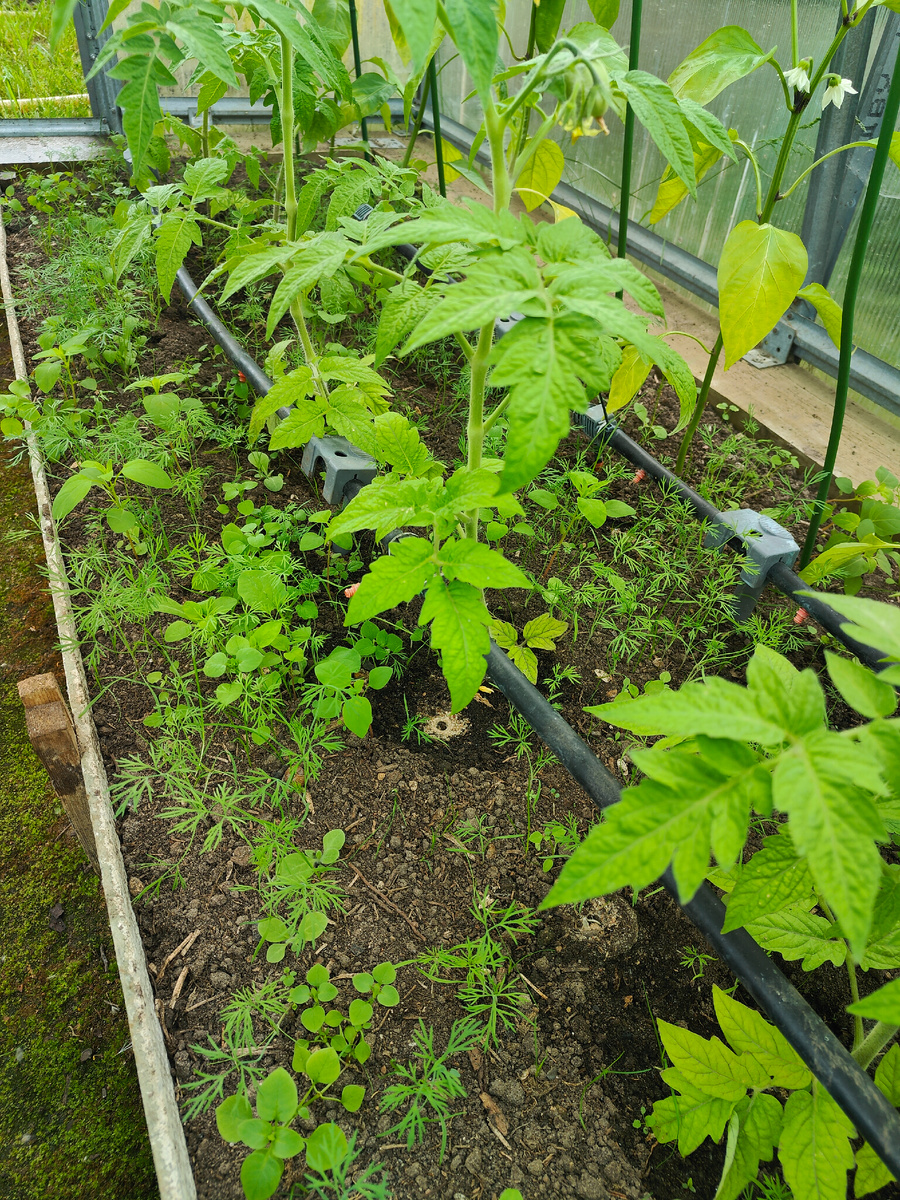 Список злостных сорняков у каждого садовода свой. Кроме того, этот список будет отличаться от одного региона к другому. У мня на участке самые злостные сорняки - это маршанция и мшанка. Они меня победили, а не я их. Ну ещё сныть, как же без неё. Но с ней мы пока на равных - то есть большая часть участка уже без сныти, но есть ещё места, на которых она держит оборону. Есть ещё всякие другие сорняки, с которыми тоже идёт борьба, но всё-таки они не такие докучливые. А в этом году в роли сорняков выступили мирные растения, просто их неожиданно стало как-то слишком много. Первое - укроп. Когда-то давно я его сеяла на грядку с зеленными культурами. Потом он пошёл гулять по саду самостоятельно. Растёт вольно по всему огороду, где вздумается. Я его частично выпалываю, но много где оставляю. В принципе, он мне уже стал надоедать. И я не понимаю, откуда его столько берётся, ведь я удаляю его сразу после того, как у него появляются желтеющие зонтики. До того, как созреют семена. Неужели его се