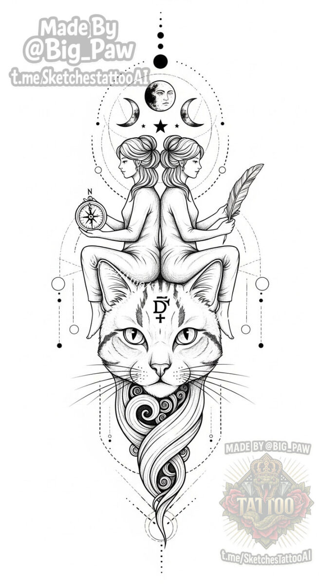 #2503 Подборка по запросу подписчика - сделать эскизы, близнецы в год кролика, кота 🧠 SYNTX 💳 Донат 😎 НейроБро 😎 Эскизы без вотера 💀 Эскизы от нейросети #знакзодиака #близнецы #кот #эскизы #тату #татуировки