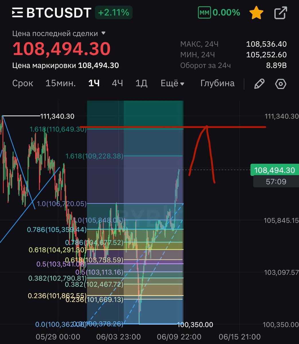 Лимитка в шорт, #btc 10% движения 10х ликвидация, плюс фибо