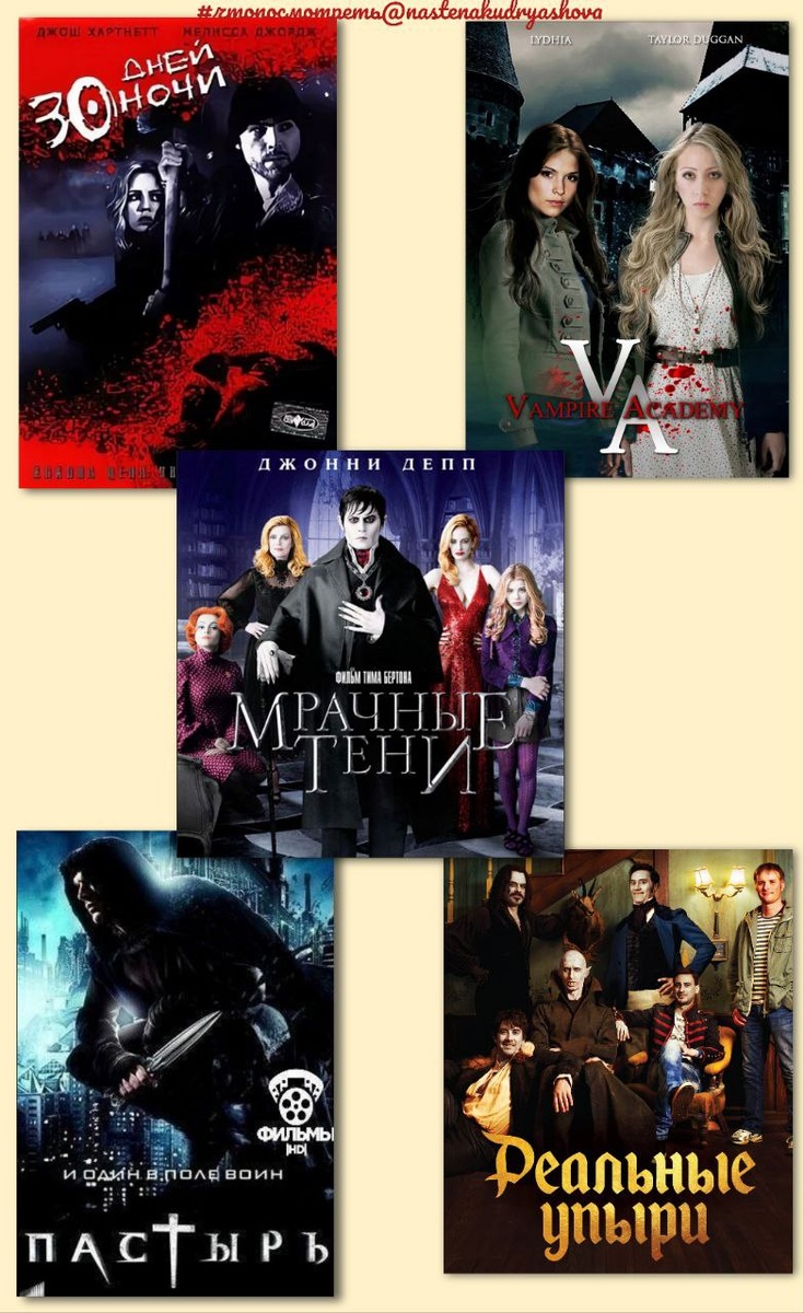 Подборка 10 фильмов про вампиров: 🎥Ван Хельсин (2004г). 🎥Блейд (1998г). 🎥Другой мир (2003г). 🎥Сумерки (2008). 🎥Дракула (2014г). 🎥Мрачные тени (2012г). 🎥30 дней ночи (2007г). 🎥Пастырь (2011г). 🎥Академия вампиров (2014г). 🎥Реальные упыри (2014г). 10 сералов про вампиров: 📹Штамм (2014г). 📹Дневники вампира (2009г). 📹Вампиры средней полосы (2021г). 📹Ван Хельсинг (2016 г). 📹Древние (2013г). 📹Пищеблок (2021г). 📹Баффи — истребительница вампиров (1997г). 📹От заката до расвета (2014г). 📹Чем мы заняты в тени (2019г). 📹Вампирские войны (2019г). А какие вы бы порекомендовали или вкючили в список?