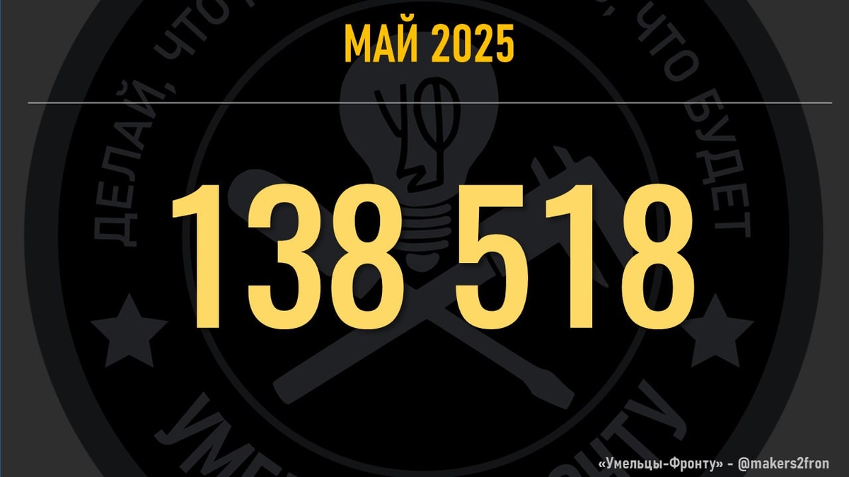 📋 Отчет о работе сообщества за май Ну что там, трампушка войну остановил? Если верить нашим цифрам - все стало только жёстче. Наши крутые парни дают хохлу жару и мы еле поспеваем 😜 За прошедший месяц наш бешеный распределенный заводик за свой счет и с помощью неравнодушных людей бесплатно передал на фронт 138 518 изделий. Хвостовиков на ВОГ - 25 481 Накольников на ВОГ - 32 102 Предохранительных крестиков - 13 180 Контейнеров "ОФАБ" - 3 755 Патронов для стрельбы по FPV - 6 000 Контейнеров "КП" - 1 449 Турникетов "Za Жизнь" - 879 Сбросов на Mavic-3 - 496 Сбросов на FPV - 109 Выражаем огромную благодарность каждому, кто до сих пор принимает участие в нашей затее и верит в то, что наши изделия помогают достичь Победы! Если что, за семь месяцев отчетности мы вместе изготовили и передали на фронт 589 565 полезных поделок. Это точно тот проект, которому стоит помогать: 2200700993960201 (Т-Банк) 2202206904306474 (Сбер) 🇷🇺 Делай, что должно и будь, что будет!