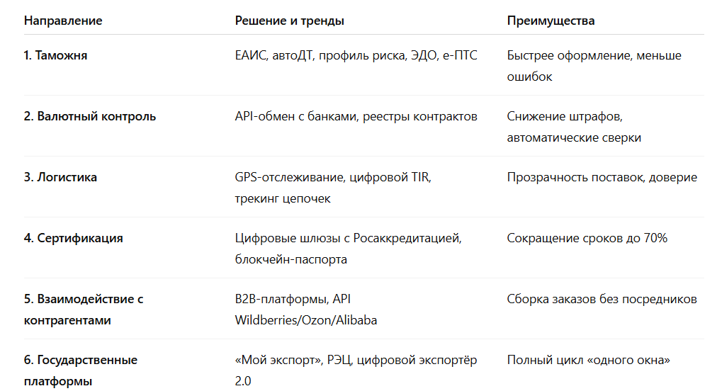 2025 год стал поворотной точкой в цифровизации внешнеэкономической деятельности. Под давлением санкций, логистических разрывов и валютных ограничений российский бизнес массово пересаживается с бумаги и Excel на ИТ‑платформы, API и автоматизацию цепочек поставок. Сегодня ВЭД — это уже не просто доставка и таможня. Это высокотехнологичный процесс, где скорость, безопасность и гибкость обеспечиваются алгоритмами. Чем выше цифровой рейтинг — тем меньше проверок и быстрее выпуск! ⏱ Скорость транзакций: 2–3 часа вместо 2–3 суток через третьи страны. Особенно полезно для МСП — не требует отдельных ИТ-отделов. «Мы перешли с ручной подачи ДТ к полной интеграции ERP с таможней через API. Экономия — более 500 тыс. ₽ в месяц и 20 человеко-дней времени на оформление»,